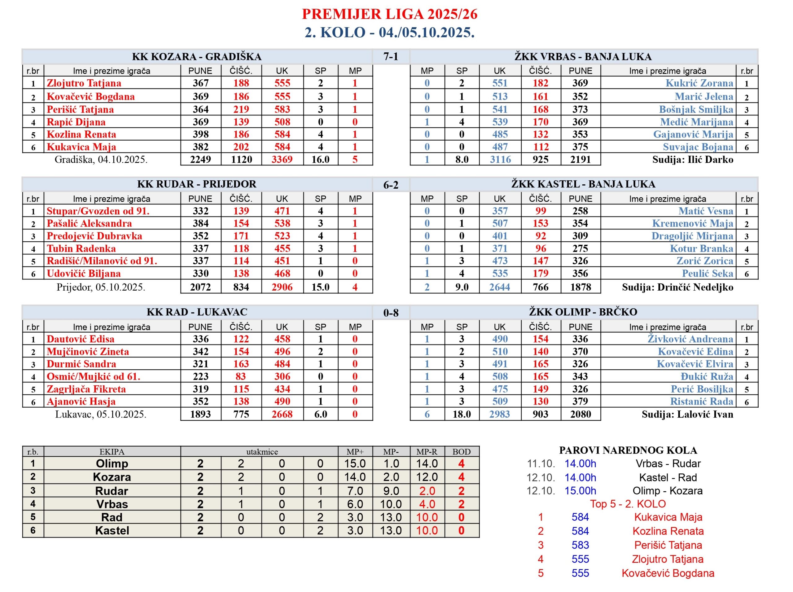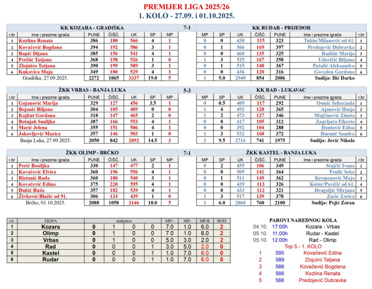• Pojedinačno Prvenstvo Bosne i Hercegovine 2025/26